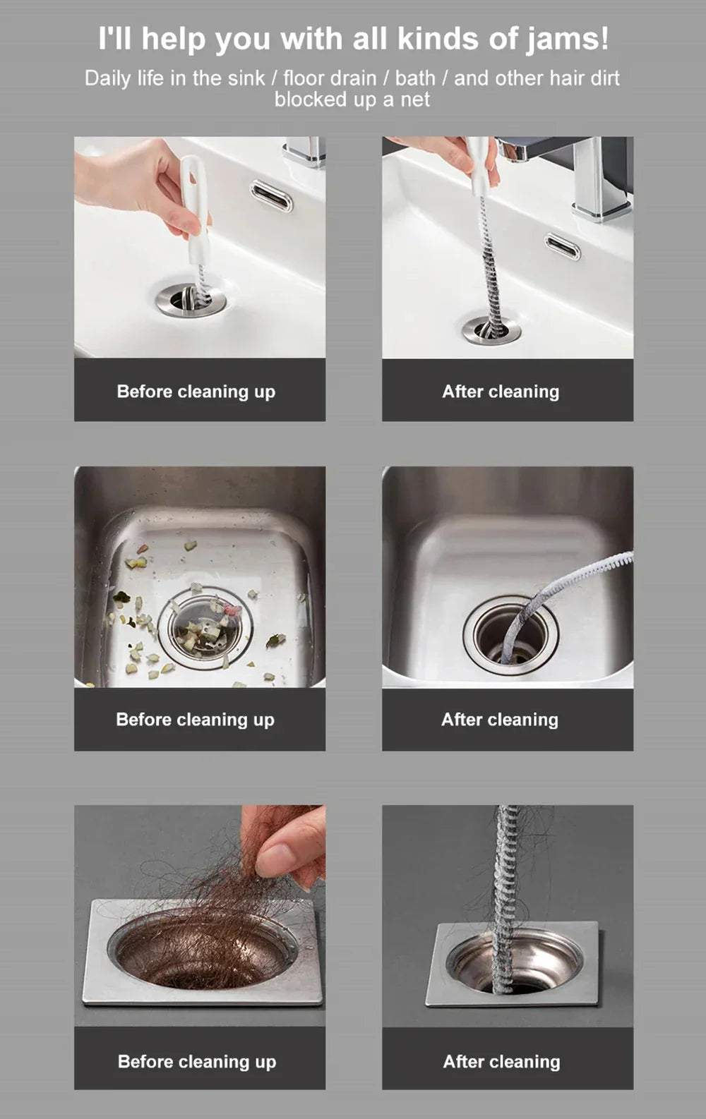 π Keep your drains flowing freely with the Pipe Dredging Brush β the ultimate tool for removing hair, debris, and clogs from sinks, showers, and sewer lines! π